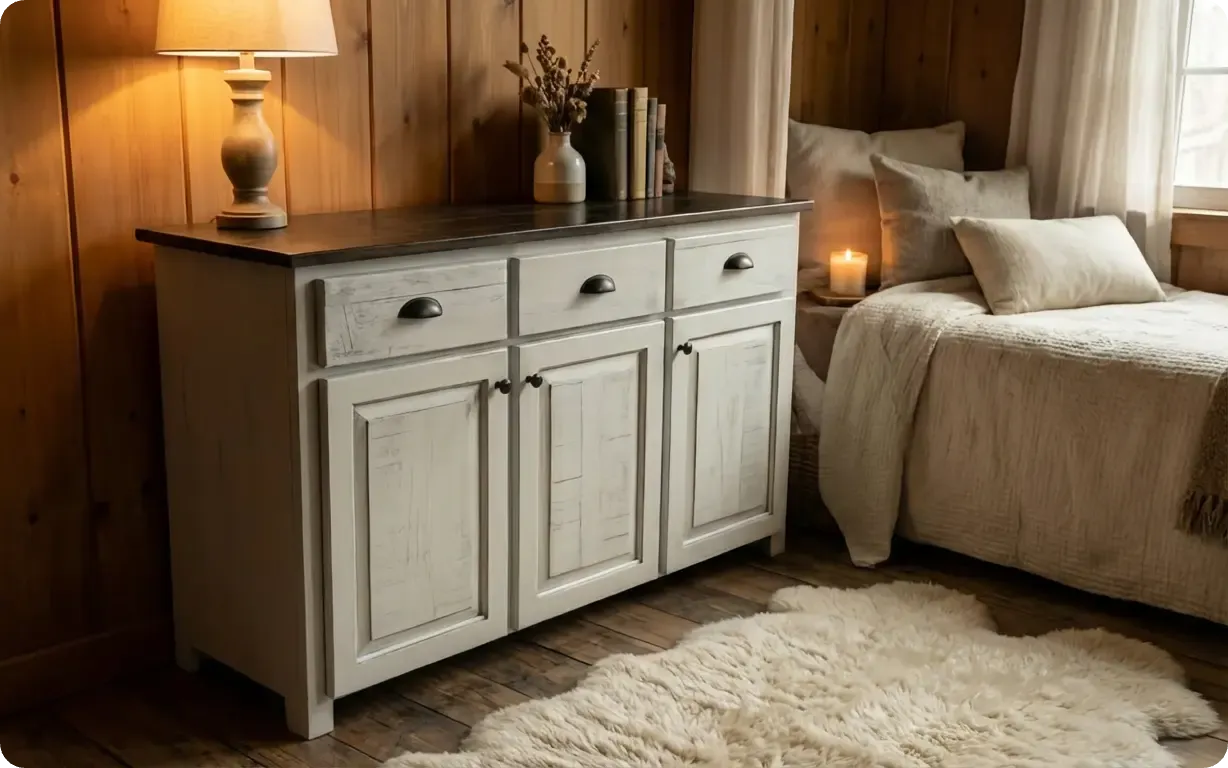 Complete bedroom sets in solid cherry, oak, or maple—drawers with dovetail joints that won't separate, solid wood panels that move naturally with humidity changes (preventing cracks), and hand-applied finishes that showcase the natural grain. These pieces appreciate in value as true furniture, not disposable decor.